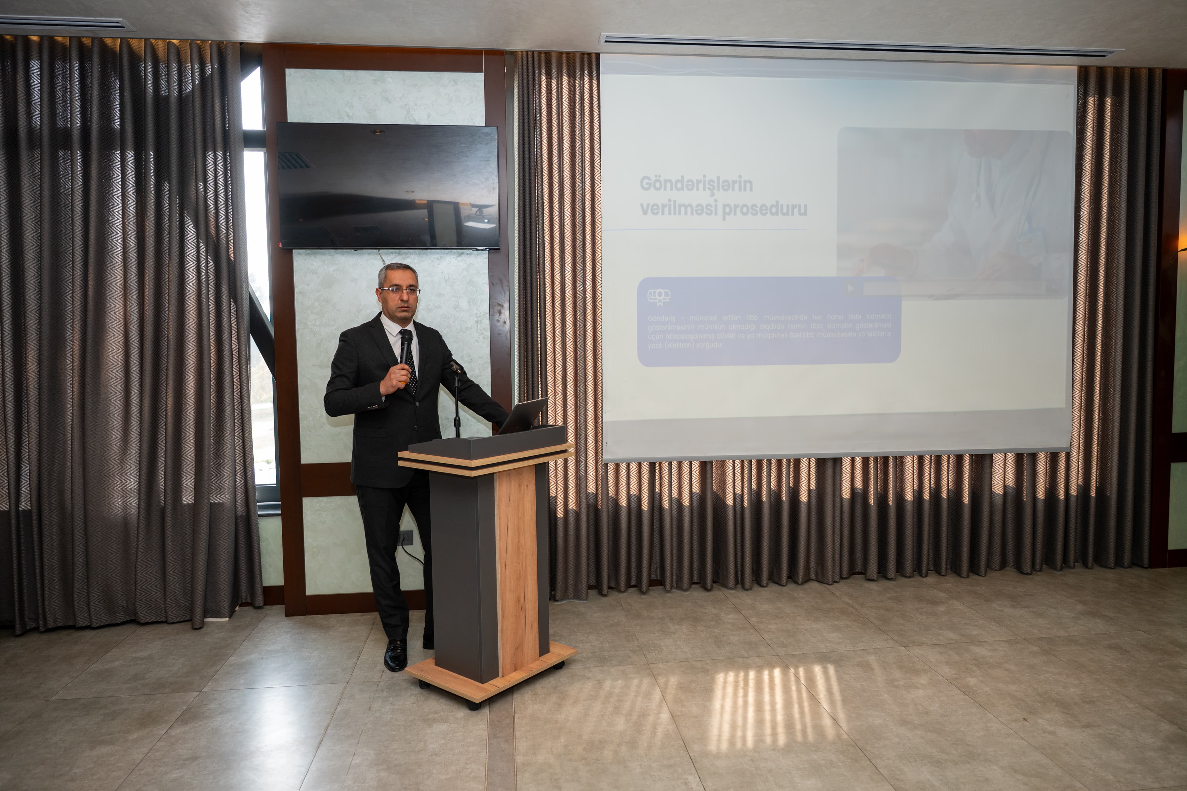 Agentliyin Göndərişlər şöbəsinin müdiri Arif Əkbərov vətəndaşların ixtisaslaşmış tibbi xidmətlərə yönləndirilməsində göndəriş sisteminin düzgün tətbiqinin vacibliyini vurğulayıb. O həmçinin göndərişlərin əldə olunması üsulları, tibbi xidmətlərin göstərilməsi zamanı elektron göndərişlərin tətbiqi, eləcə də təcili və təxirəsalınmaz hallarda özəl tibb müəssisələrinə göndəriş verilməsi proseduru barədə geniş məlumat təqdim edib. Onun sözlərinə görə, göndəriş mexanizmi yalnız xəstənin ixtisaslaşmış xidmətdən istifadəsini təmin etmir, eyni zamanda tibbi resursların səmərəli bölüşdürülməsi və sistem üzrə vahid qərarvermənin formalaşmasına xidmət edir.